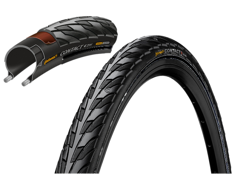 Велопокрышка Continental Contact со стальным кордом для городских, туристических и трекинговых велосипедов с колесами диаметром 28 дюймов. Подходит для любого типа асфальтированной местности. Хороший выбор для ежедневных поездок по городу. Защитный слой SafetySystem состоит из усиленной кевларом состоит высокопрочной нейлоновой ткани. Покрышка устойчива к проколам и порезам, но при этом легкая и гибкая, чтобы приспосабливаться к любой поверхности. Не повышая вес и не оказывая заметного сопротивления качению.