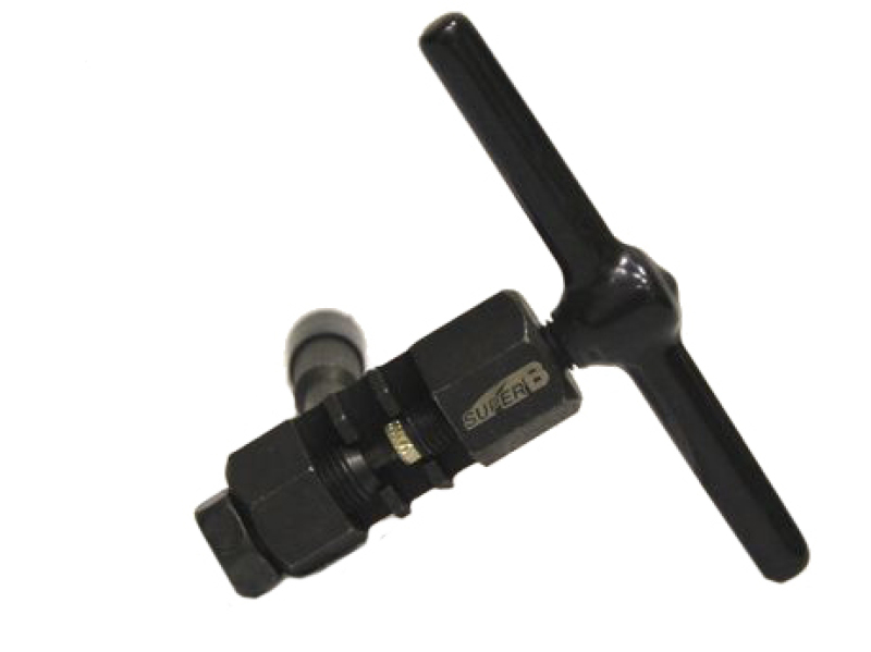 Выжимка цепи Super B 3360 - профессиональный инструмент для обслуживания и замены велосипедных цепей. Оборудован фиксирующей гайкой. Совместим с односкоростными и 6-10 скоростными цепями. Корпус выжимки выполнен из высокопрочной стали, это позволяет сохранять долгий срок службы выжимки, а сменные пины из прочной сr-mo стали позволяют соблюдать правильную работу без ущерба цепям. Рукоятка выполнена из стали и имеет резьбовую установку для экономии места при хранении или транспортировке, форма и резной наконечник удобны в работе, инструмент не выскальзывает из рук.
